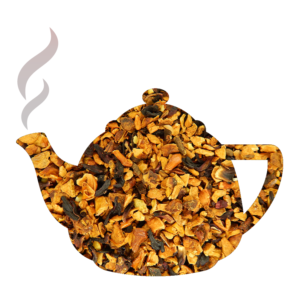 Mélange aromatisé, pomme, hibiscus, raisins de Corinthe, cannelle, amandes.