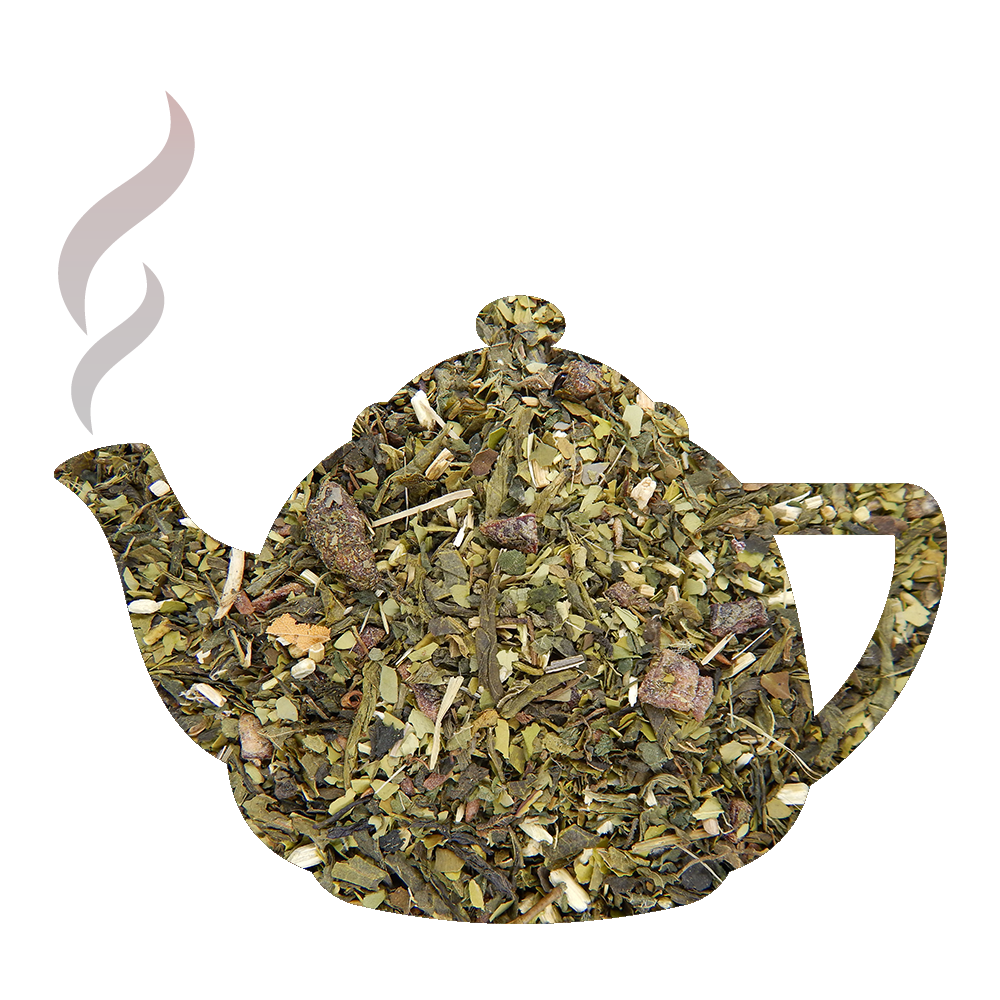 Mélange de maté, thé vert, plantes et airelles aromatisé fruits rouges.