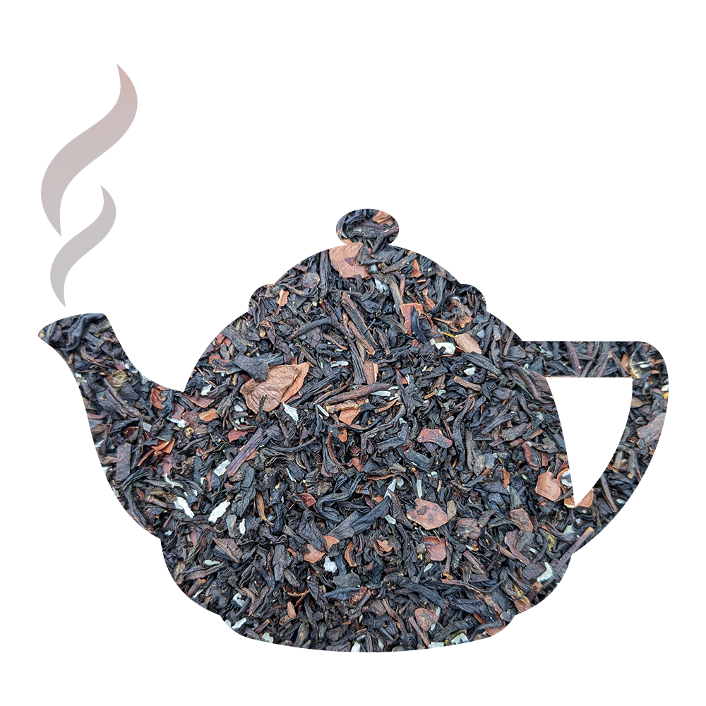 Ingrédients : Thé noir de Chine, aromatisé, fèves de cacao, coco rappée, arômes : vanille, caramel, coco, café.