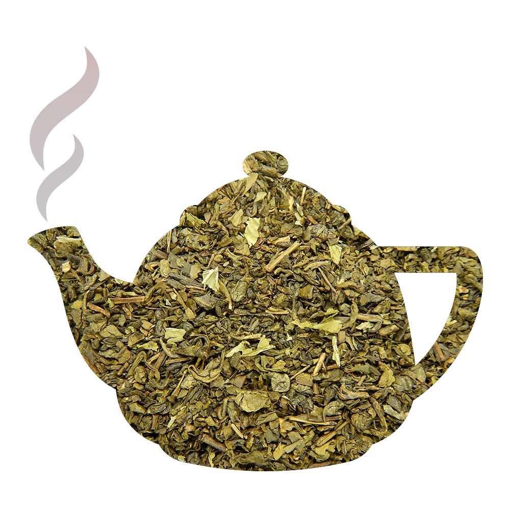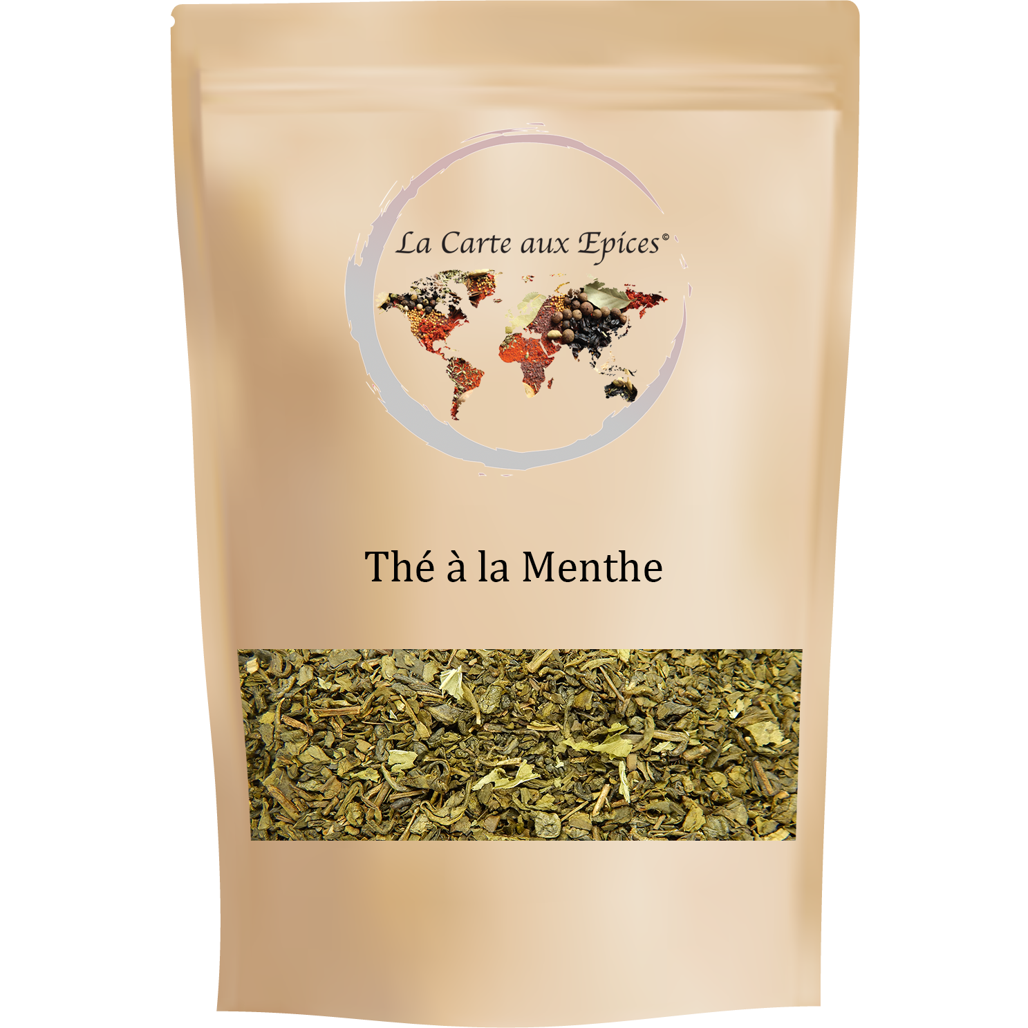 Mélange de thé vert Gunpowder et de menthe du Maroc. Le thé à la menthe fait partie de la tradition au Maroc et dans de nombreux pays arabes, offrir un thé à la menthe est une expression de savoir-vivre et un geste d’hospitalité.