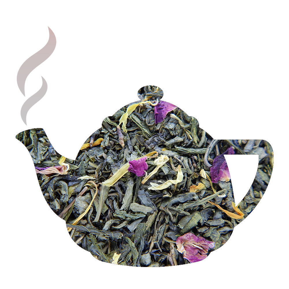 Ingrédients : Thé vert de Chine, aromatisé, fleurs de souci, pétales de rose, morceaux de mangue, arômes : mangue, mangoustan, fruits de la passion.